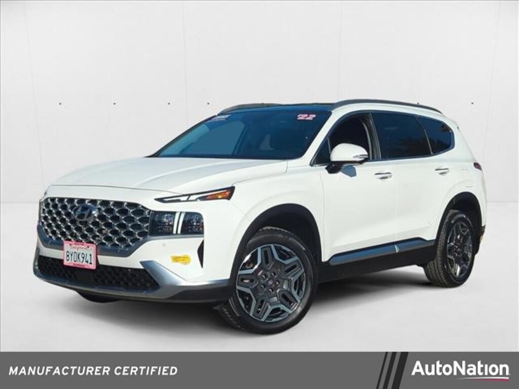 This 2022 Hyundai Santa Fe Plug-In Hybrid Limited is proudly offered by AutoNation Hyundai Carlsbad This Hyundai Santa Fe Plug-In Hybrid Limited has a tough exterior complemented by a well-designed interior that offers all the comforts you crave. Excellence, luxury and stature are just a few of the pillars this car is built upon. This Hyundai Santa Fe Plug-In Hybrid features AWD. That means power and control delivered to all four wheels for maximum grip and improved handling. In addition to being well-cared for, this Hyundai Santa Fe Plug-In Hybrid has very low mileage making it a rare find. Added comfort with contemporary style is the leather interior to heighten the quality and craftsmanship for the Hyundai Santa Fe Plug-In Hybrid Limited.
