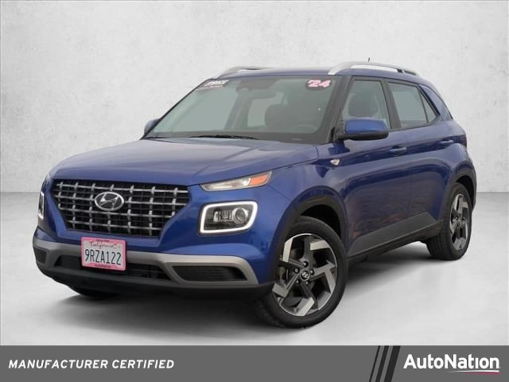 Looking for a clean, well-cared for 2024 Hyundai Venue? This is it. This Hyundai includes: INTENSE BLUE BLACK, CLOTH Cloth Seats Premium Synthetic Seats *Note - For third party subscriptions or services, please contact the dealer for more information.* Sure, every Certified Pre-Owned Hyundai is rigorously inspected. However, a Certified Pre-Owned Hyundai Venue Limited from AutoNation Hyundai Carlsbad offers complete peace of mind. With this exceptional SUV, you'll get sport, utility, and comfort. The 2024 Hyundai offers compelling fuel-efficiency along with great value. You will no longer feel the need to repeatedly fill up this Hyundai Venue Limited's gas tank, in part because of it's superb EPA rating.